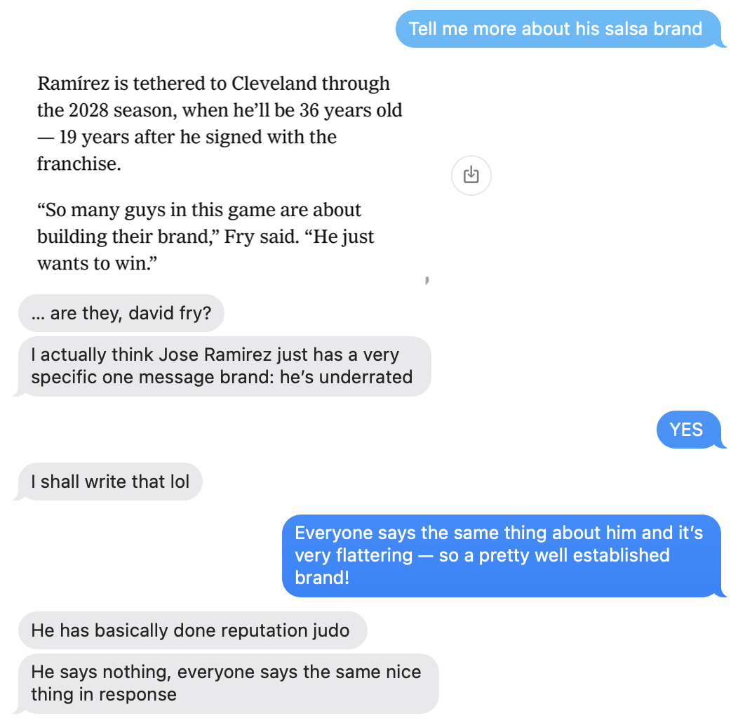 Rather than keep texting each other about this, I suggested we take it to the ‘stack. So that’s what we have for you: A meta musing on whether José Ramírez has failed/neglected/chosen not to make a name for himself — or whether he’s made a very intentional name for himself as baseball’s most underrated player.