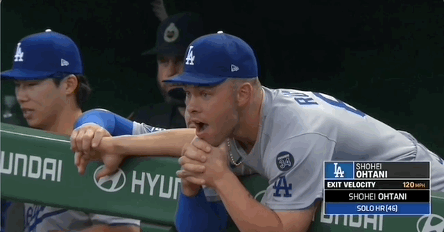 Extremely useful of Daulton Rushing to react not just to the occasion of Shohei Ohtani’s 100th home run as a Dodger but also to the on-screen note about the insane exit velocity (120 mph!!) in such an expressive encapsulation of the universal emotion it elicited.