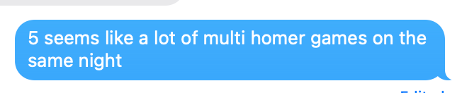 But really, doesn’t that seem like a lot of multi-homer games on one day? I thought it did! So I said as much to Zach.