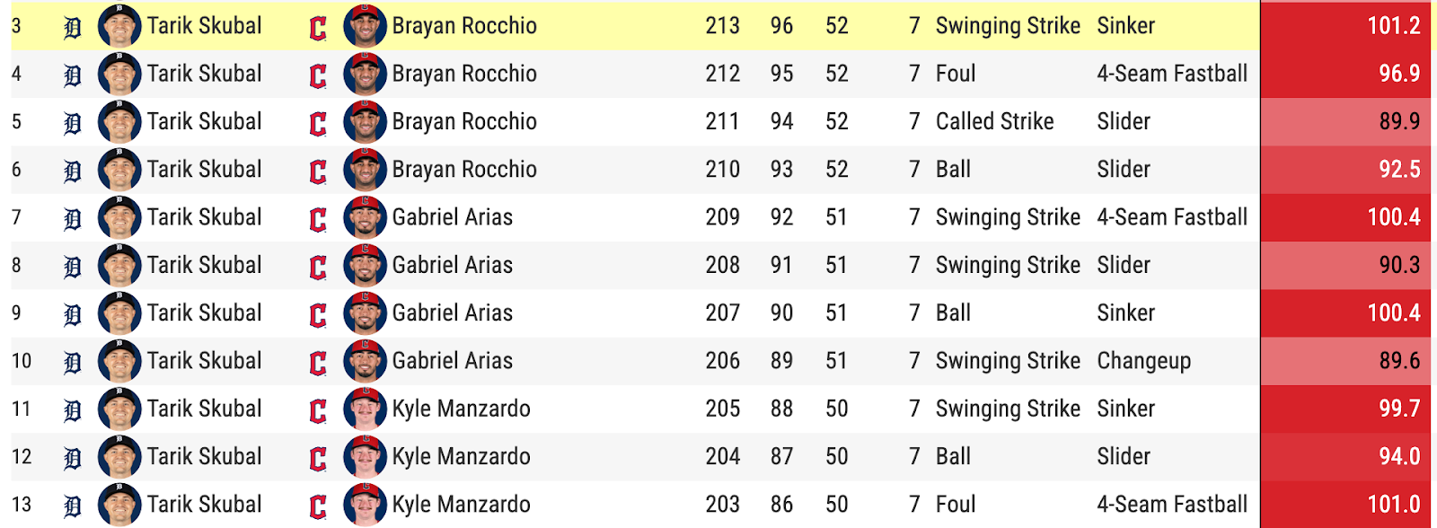 And then by the time I got to this blurb, Skubal had finished out the seventh inning by inducing a swinging strike on his 96th pitch of the game — at 101.2 mph.