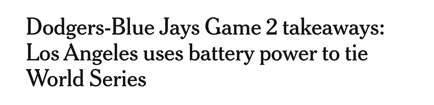 ⚾ Dodgers’ catcher Will Smith — who was part of a particularly potent class of catchers from an offensive perspective this season — had the go-ahead home run in Game 2. Paired with what Yamamoto did, that was all the Dodgers needed to even the series: Pitcher and catcher. In other words: