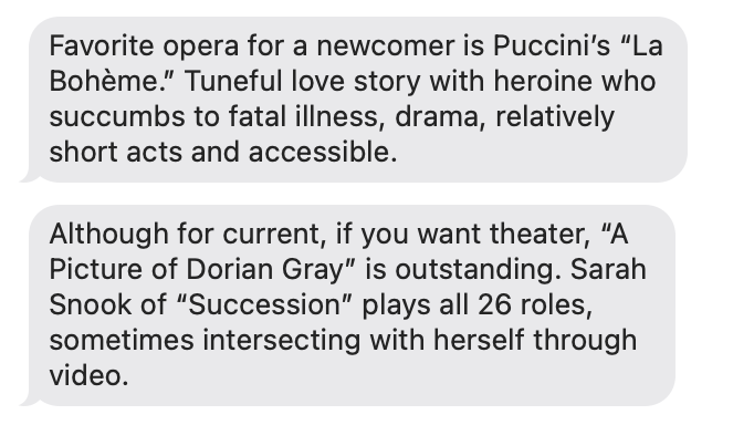 On Fridays we do a segment dedicated to what we’re fans of *other* than baseball. This week, I invited a guest to participate. Since the interview I did with AP sportswriter and baseball contract savant Ron Blum was such a hit, I asked him what he’s enjoying these days. I mentioned in the original piece that Ron is a real opera head, so I also asked him to recommend an opera that non opera-knowers can enjoy. For context, he said he’s seen 30 shows — theater, opera, concerts — so far this year. Next interview topic: How does he find the time?