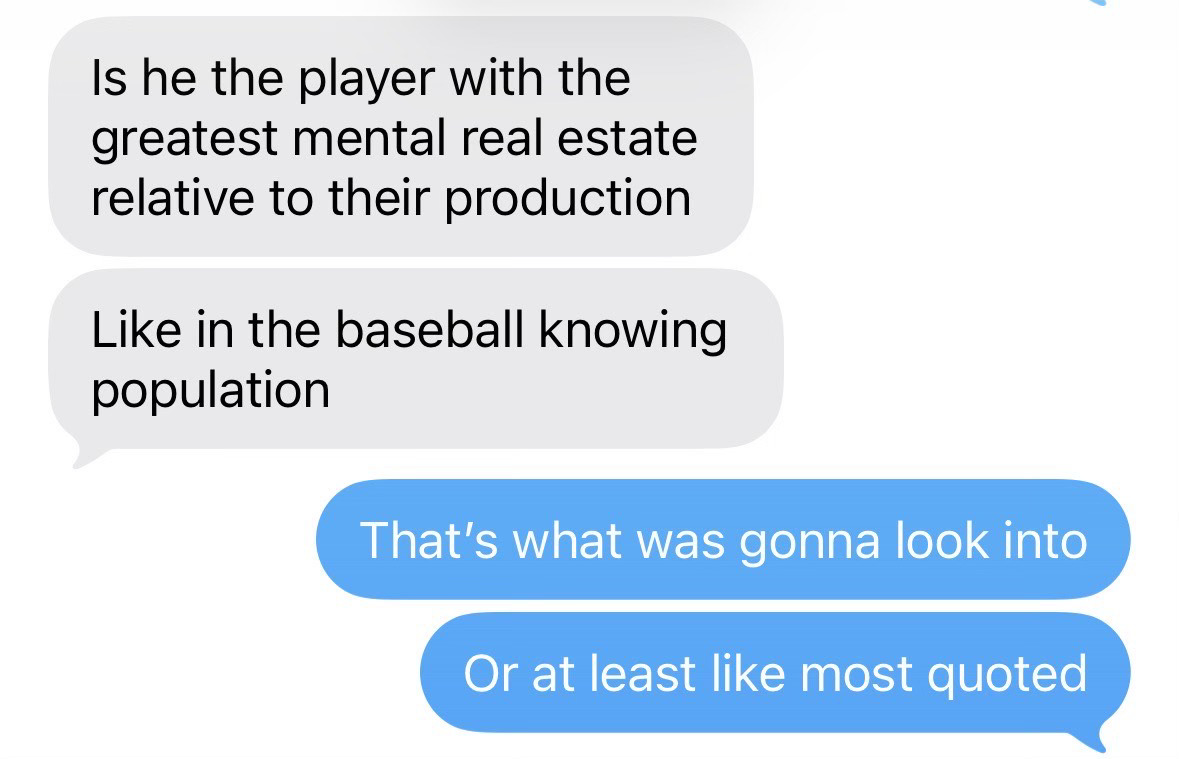 Substance of those aside for a moment, Pham is portrayed in the story as a thoughtful, plugged-in participant in the business of the game, and that I can whole-heartedly agree with. He has indeed developed his own personal strategic lane. But it’s not about stats or clubhouse vibes or a winning mentality. It’s about hustle. The hustle to remain relevant — to be quoted, to be mentioned, to be written about far more than on-field value would dictate at this stage of his career. If WAR stood for Words Above Replacement, well, PhamGraphs would be the authority.